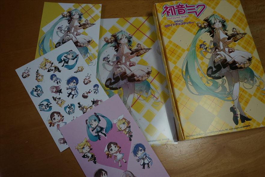 ノベルティが、同じ絵柄のミニファイルだったし、個数によって変わるオマケがまたカワ(・∀・)イイ!! ペコちゃんフェイスのミクさんたちです。