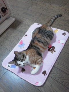2日前に扇風機をしまったばかりなのに、今日ストーブを出した私です。xxxxx でも、衣替えをまだきちんとしてません。半袖Tシャツが普段着の引き出しにまだ入れっぱなし・・・。 うちの新入りvvv猫ちゃん、みかえるvvvがストーブと初対面。(^O^) 前居たすえぞうは物怖じせず、最初からストーブの前に陣取って寝転がってた(^_^;)けど、みかちゃんは初めは正面に来ず、後ろのコードとかスイッチ部分をふんふんチェック。(笑) 『ほら、暖かいよ~~vvv』とマットを置いた正面に座らせてやってもすぐにスルッと移動しちゃう。 みかちゃんは警戒心が強いからね~~、でもそのうち慣れるでしょ、と思ったら案の定、一時間しないうちにマットの上で伸びるように。 みかちゃんもいずれ、すえみたいにスイッチを入れた音でストーブ前に跳んでくるようになるかしら?(^-^) |