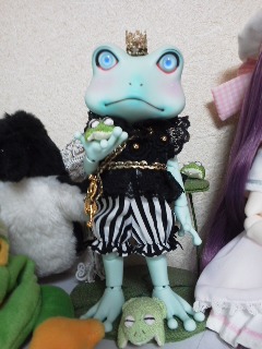 ブースにお立ち寄りくださった皆様、お買い上げくださった皆様、誠にありがとうございました。vvv 今回販売したドレスは、委託でボークス天すみ(大阪、神戸)にまた置かせて頂きますので、よろしくお願いします。(*≧∀≦*) いつもは眺めるだけで我慢していたPIPOSさんの動物ドール、『すぐに連れて帰れる』誘惑に負けて・・・・;;;; 衝動買いしてしまった~~~~~っっ!!・゜・(ノД`)・゜・企業ブースの『ゆめみ亭』さんで・・・。 ミントグリーンのイケメンvvカエル氏をぅぅ。・・・カエルは、カエルは反則ですぅうぅ(;_;) PIPOSさんのドールは、ずっと猫さんタイプの子に憧れてて、今回も白猫の女の子が即納でいたのですがお値段がちと;;;お高くて;;;(メイク付きの完成品だから当然の価格ですが・・・) サンプルで一緒にいた男の子(猫)も同じ値段だと言ってたので、そちらが即納だったらグラグラしてたかも、ですが残念ながら展示のみだった・・・。(´・ω・`) どちらにしろ、猫さんには手持ちの現金では手が出なかったんですが、カエル氏は連れ帰れる価格範囲でした・・・。 猫も好きだけどカエルも好きなんだYO!!///orz/// 眼の色(グラスアイ)が選べなくて、持ち帰れる子の目が赤しかなかったのでグレイのグラスアイも購入。サンプルの子のグレイの眼がいいなぁ、と思ったからなんだけど家に帰って早速つけてみようとしたら、径が合わなくてはまらなかった。;;;;;思ってたよりアイホールが浅かった・・・。(;_;) カエルヘッド、2種類あって、もう一種類の方がホールが大きくて18mmも入るみたいだけど、私が買った子は16mmまでしかダメだったようです。xxxx うう・・・また某に行った時にでも16mm以下のアイを探そう~~。と、いうわけで今は手持ちのペールブルー(瞳孔も青)を着けてますが、これはこれで一層人外ぽくてイイかもvvvv。 |